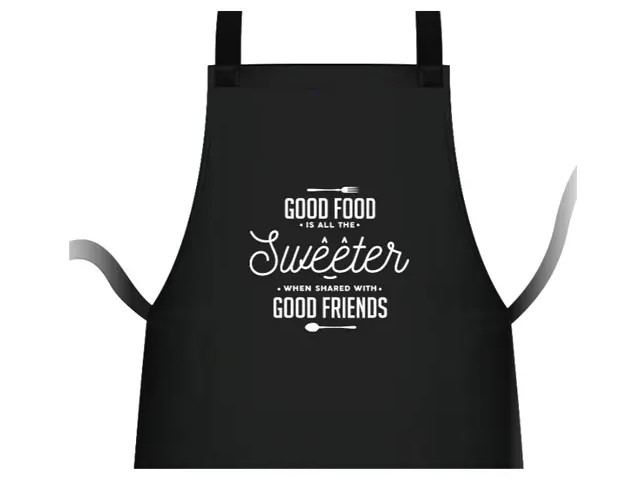 Во время термотрансферной печати изображение переносится при помощи горячего способа: под прессом. Нужно всего несколько секунд на то, чтобы рисунок чётко скопировался со специальной плёнки на фартук, а затем надёжно с ним сцепился. Вы можете быть уверены в том, что фартук с вашим изображением прослужит долгое время.